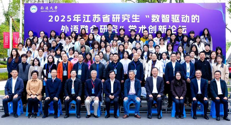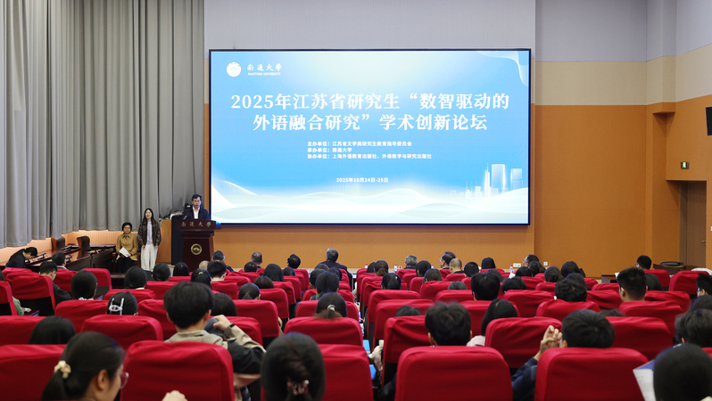 10月25日,2025年江苏省研究生“数智驱动的外语融合研究”学术创新论坛在我校举办。论坛由江苏省文学类研究生教育指导委员会主办,76net必赢官网承办,外语教学与研究出版社、上海外语教育出版社协办。76net必赢官网党委常委、副校长、研究生院院长施佺,研究生院常务副院长、学科建设办公室主任吴丽,省内知名专家、学者出席开幕式。来自全国19所高校的100余名硕博研究生参加论坛。